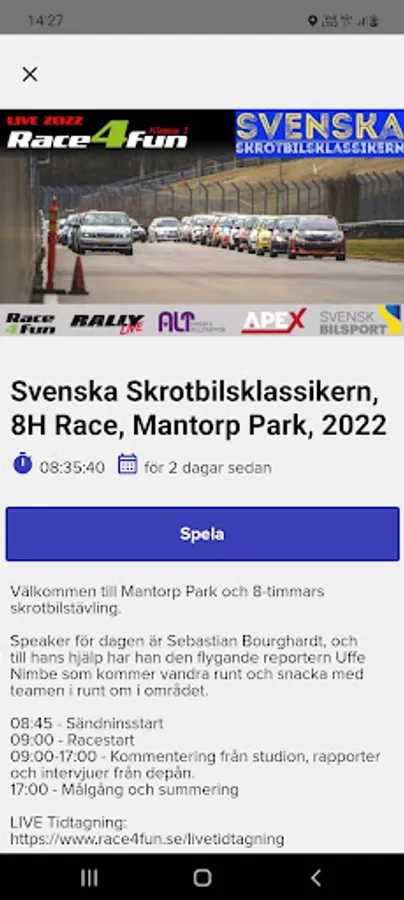 Here you will find live broadcasts from competitions, reports and magazine programs. You can choose if you want to watch an individual competition or if you want to create a subscription per month. You can follow the broadcasts via your computer, mobile or tablet and you can watch everything live and whenever you want in replay.