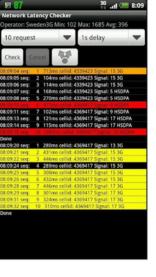 When using Telia Sonera network I noticed that my Internet Radio stopped working, I though that it was my phones fault, there was no to see if the network was slow. So I wrote this app to measure the network latency.