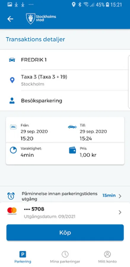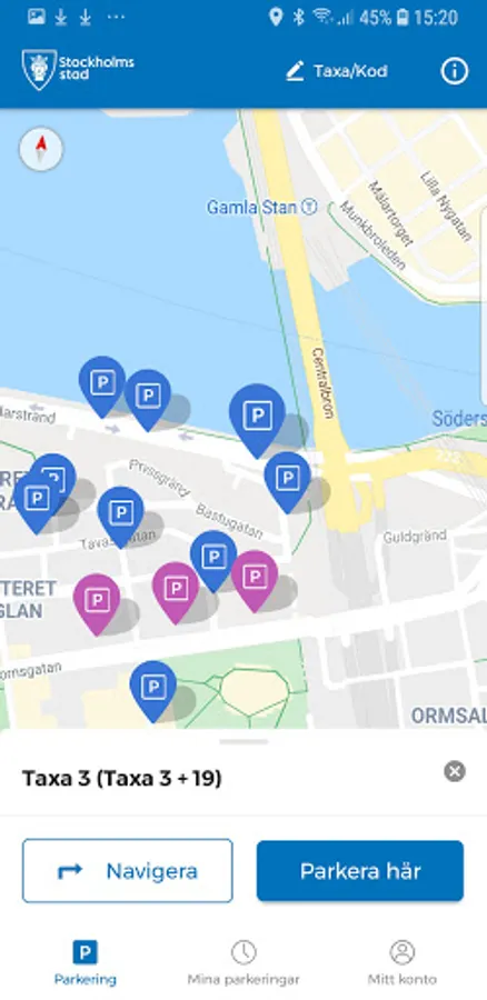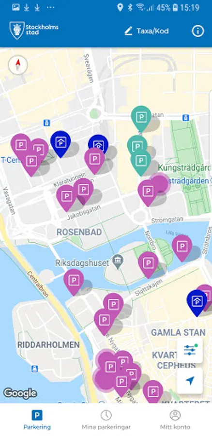 With Stockholm City's payment service Pay P, you can pay for parking on street land and Stockholm Parking's parking garages and surface parking directly in your mobile.