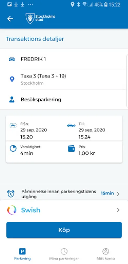 - Receipt of completed parking can be sent to you via email. Receipts can also be downloaded afterwards, in the app or via the web service "My pages".