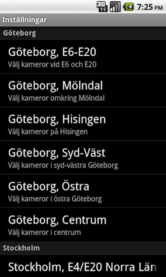 See what's up in traffic on your mobile. Choose from nearly 250 cameras in and around Gothenburg and Stockholm. Camera images are taken from Trafiken.nu Sort them in the order you want, and cycle through the images by swiping your finger or activate the slide show function.