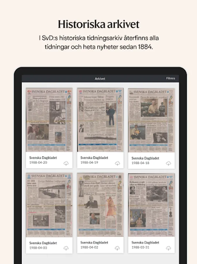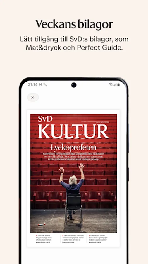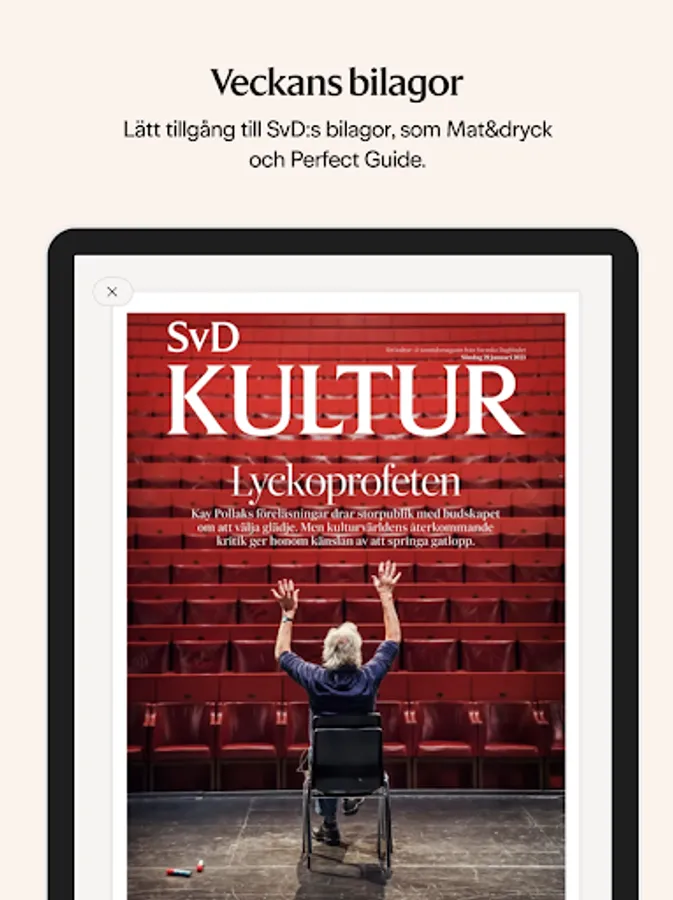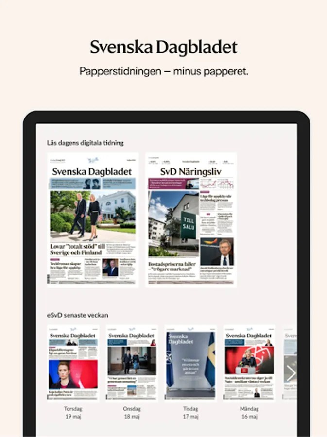 Just for you as a subscriber to Svenska Dagbladet. With eSvD you get a fully-loaded, updated and easily accessible reading experience in the paper magazine, with a clear beginning and end and a structure you recognize. The only difference is the lack of paper.