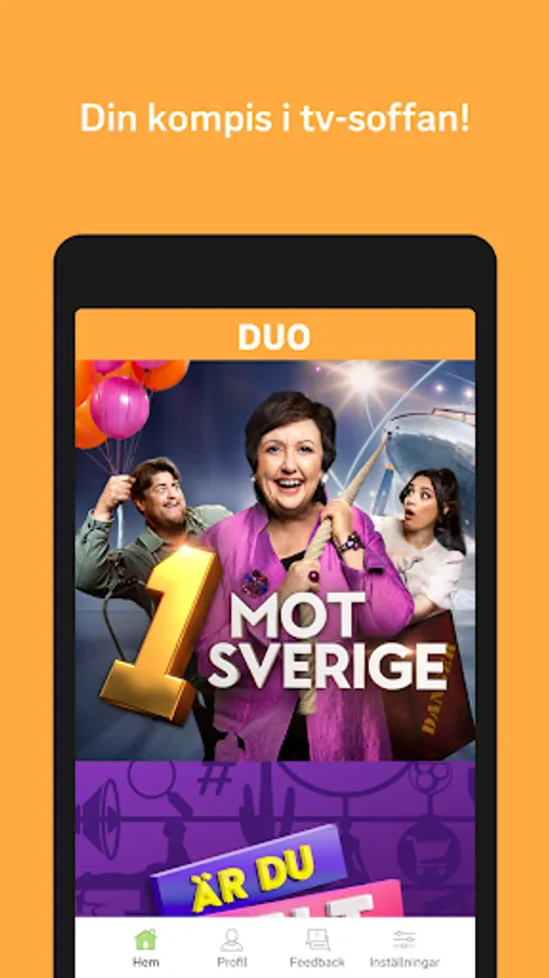 And surely you sometimes wish you were allowed to join in some way? You can with Duo. In Duo you will find what you need to be able to participate and vote, guess, play with or influence the content of several of your favorite programs.