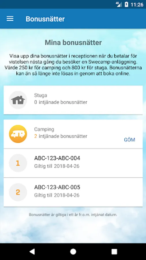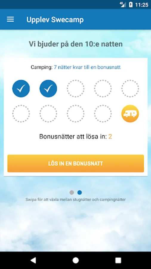 Download the app and receiving valuable offers. By using the app provides you every tenth night free. Your assembled served free is valid for one year and can be used on any Swecamp facility.