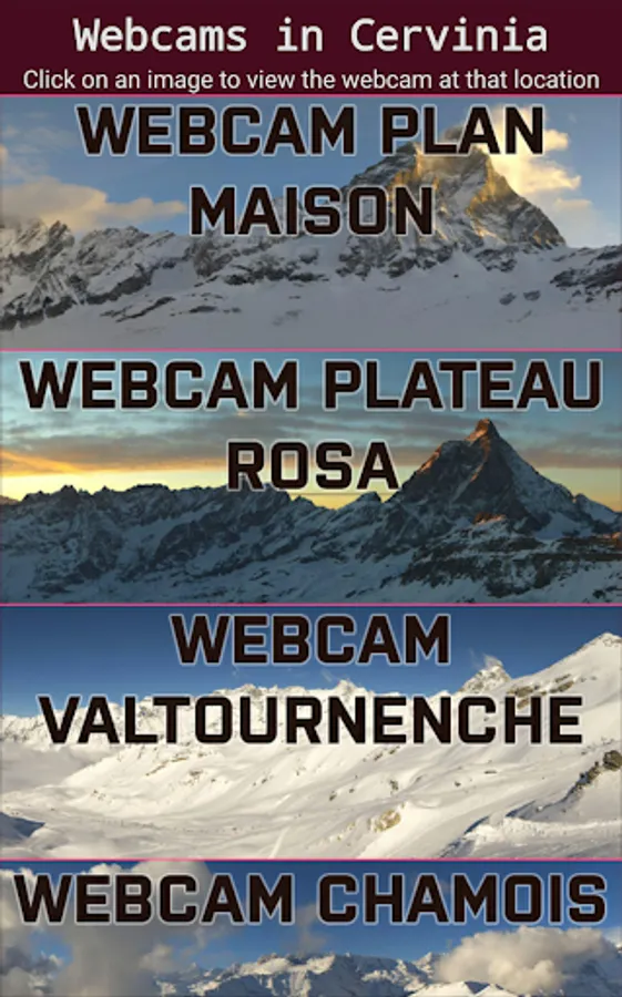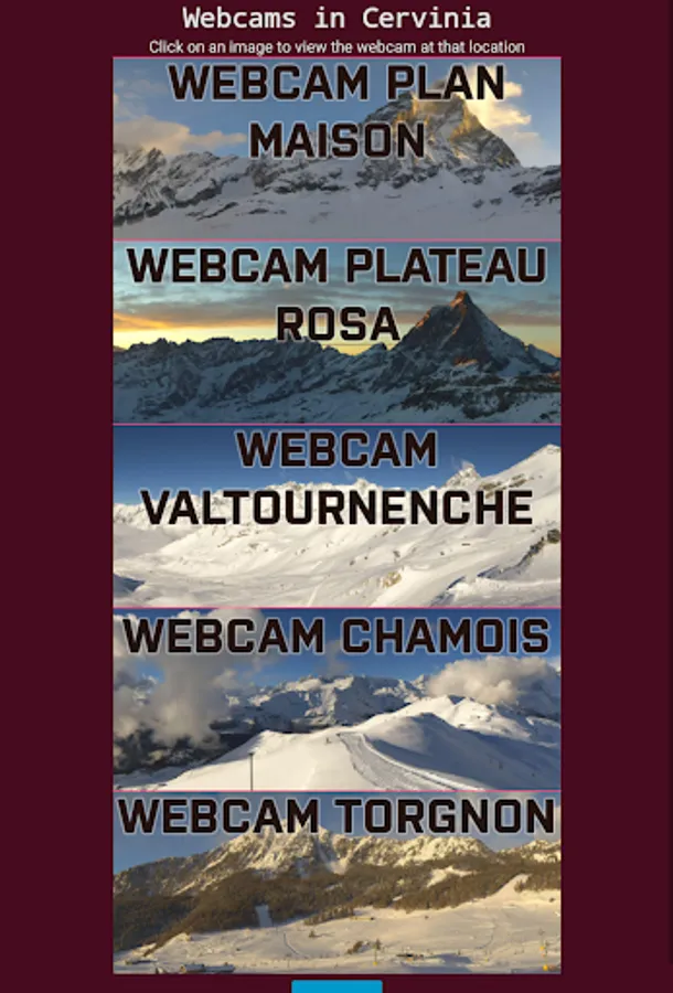 View the latest alp images taken from five different locations in Breuil-Cervinia:
