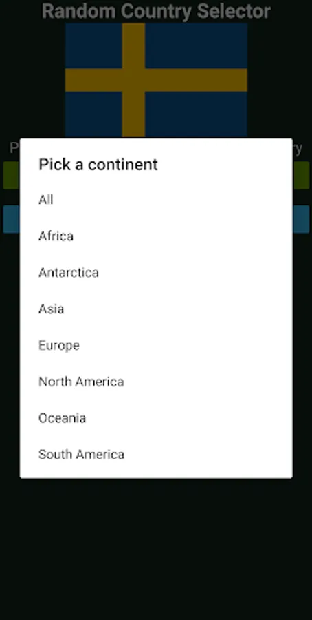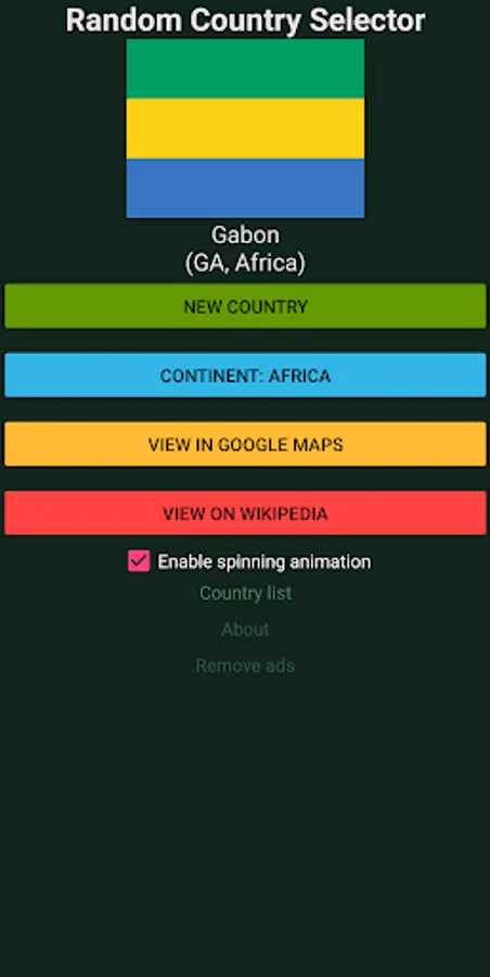 With the tap of a button, select a random country from anywhere in the world. View its flag and show its location on a world map.