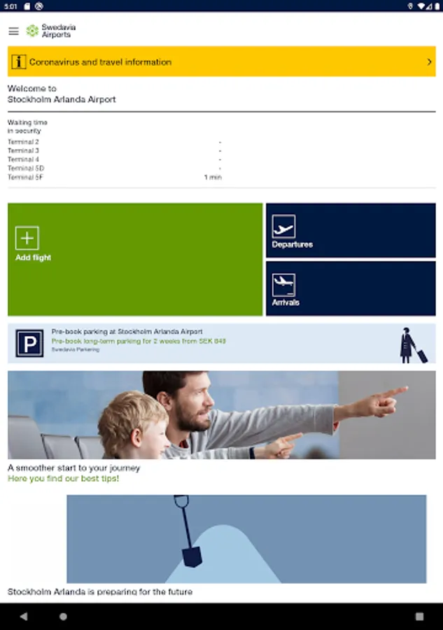 With this common app for Swedavia’s ten airports, you’ll have a complete overview of your journey.