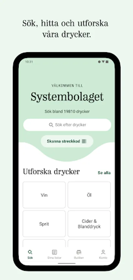 The app contains information about the alcoholic beverages that you can buy from Systembolaget. You must be 20 years old to use the app. Systembolaget does not sell and distribute alcoholic beverages to those who have not reached the age of 20, to those who are noticeably affected or in case of suspicion of malpractice.