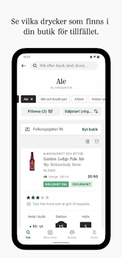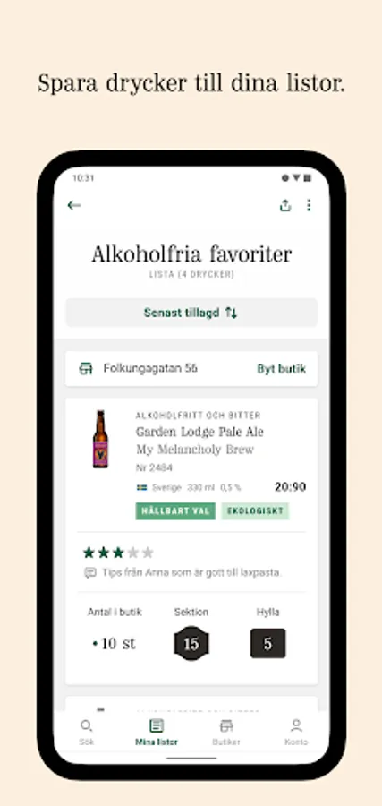 • Create an account so that you can easily access your lists in both the app and on systembolaget.se.