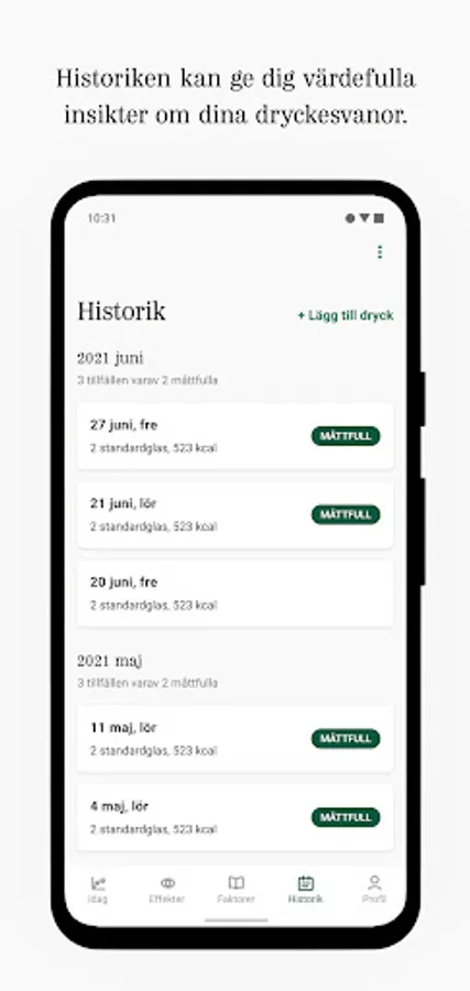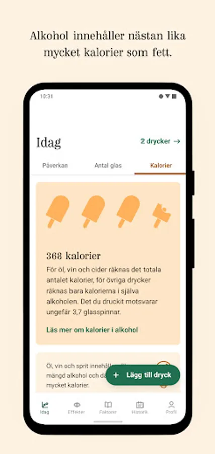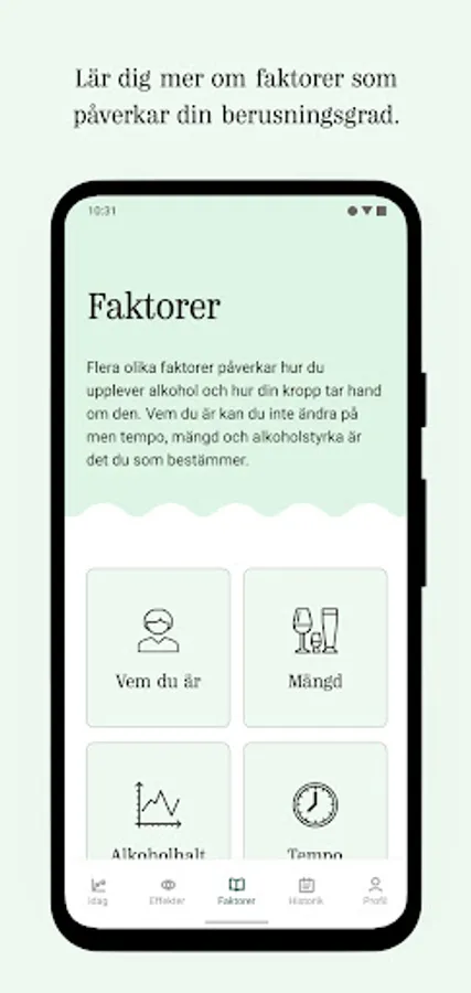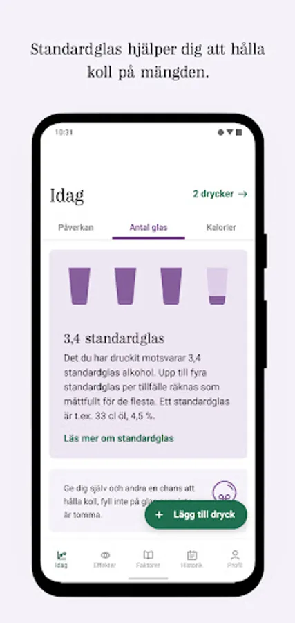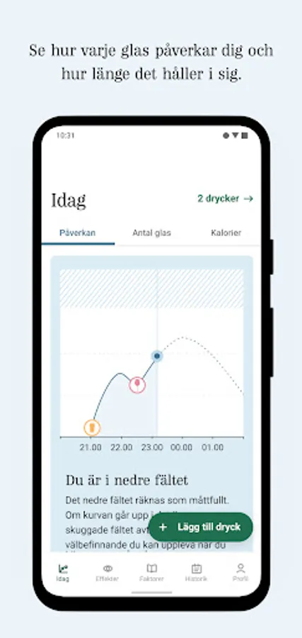 Moderate is an app from Systembolaget for you who are over 18 years old. We have created it to make more people reflect on their drinking and to avoid overconsumption of alcohol. We also hope that you will learn more about how alcohol affects the body and what it means to drink in moderation. The app gives you insights on how different drinks, quantity and pace can affect you.