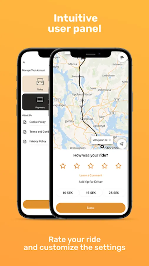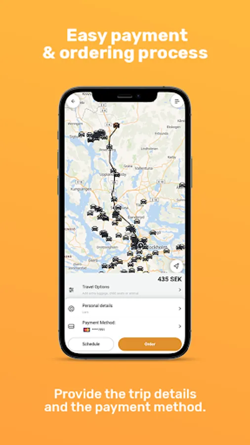 On the app's map, you can clearly see available taxis in your area. You will find our reliable and punctual drivers in every major city in Sweden; we are located in Stockholm, Gothenburg, Uppsala and many more.