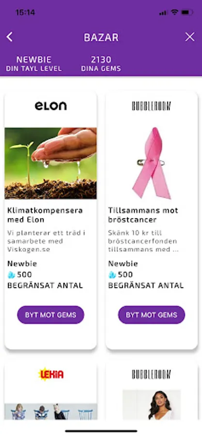 In addition to the bonus, you earn TaylGems when you shop and are active in the app. You then exchange your Gems for offers, products and much more in our Bazar.