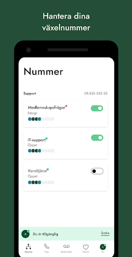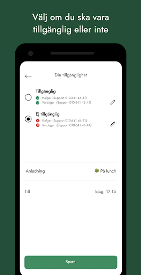 * Set yourself as available or unavailable for your exchange numbers (Vessel Plus user)