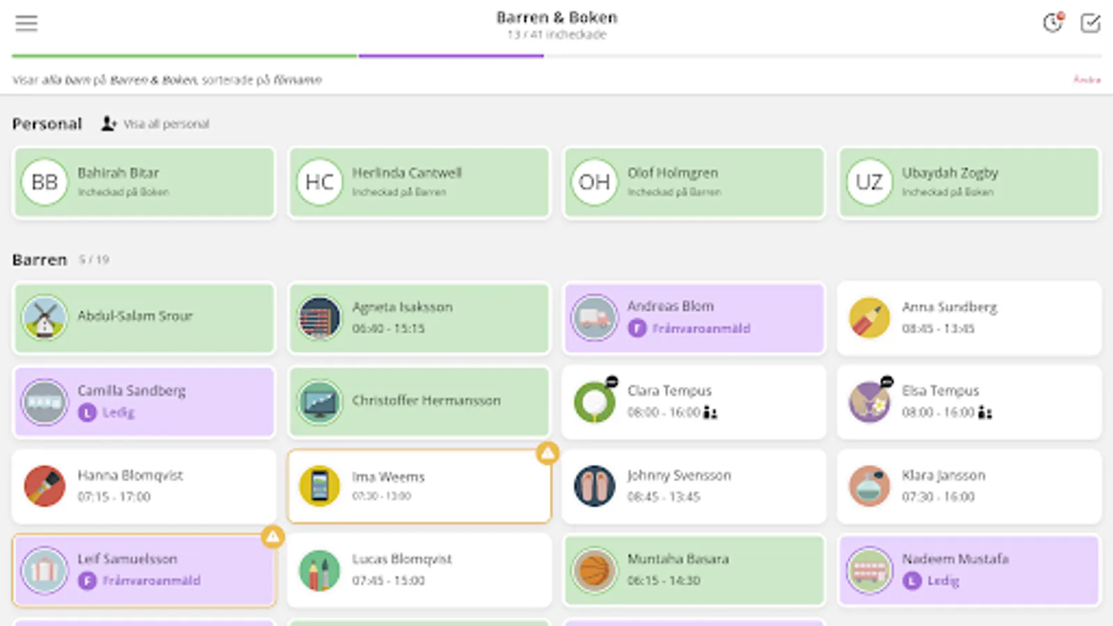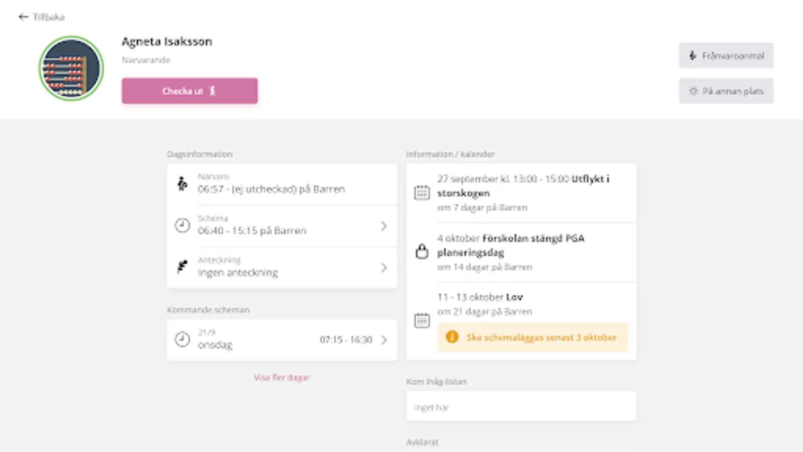 This (Tempus Nu) is the app used by preschool and after-school staff to register arrivals and departures for the children.