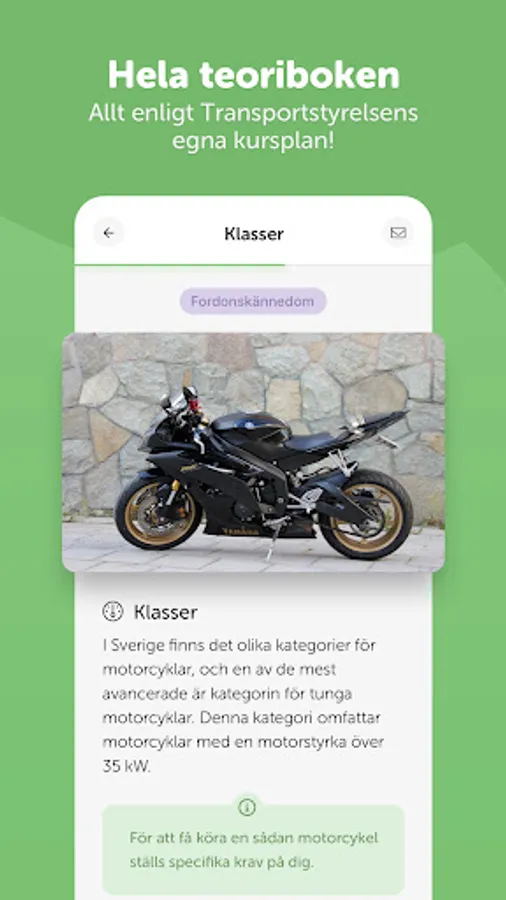 Pass the theory test for an A driver's license on the first try with our app. "Ta MC-Körkort" gives you personal guidance, customized tests and updated information directly on your mobile.