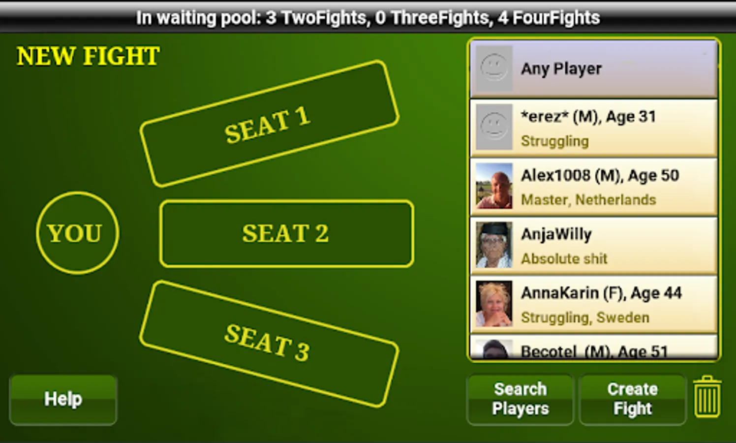 Challenge friends and strangers in this exciting rummy based game. You can play as many simultaneous fights as you like and each fight can be against 1-3 real opponents.
