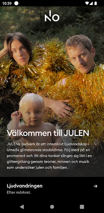 This interactive sound work is the first part and leads you through a Christmas preparation Umeå. After downloading the app, you will be able to walk through Umeå's sparkling city center and unlock poetry, memories and music at your own pace.