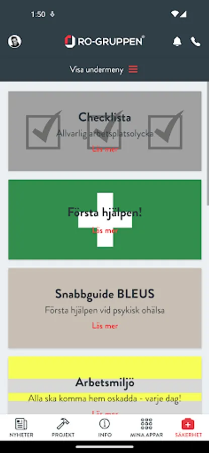 In the app, we have also gathered important documents concerning health and safety and an interactive "Checklist for serious workplace accident."