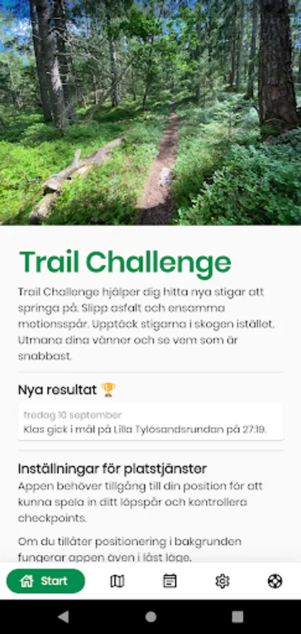 Trail Challenge hjälper dig hitta nya stigar att springa på. Slipp asfalt och tråkiga motionsspår. Upptäck stigarna i skogen istället. Utmana dina vänner och se vem som är snabbast.
