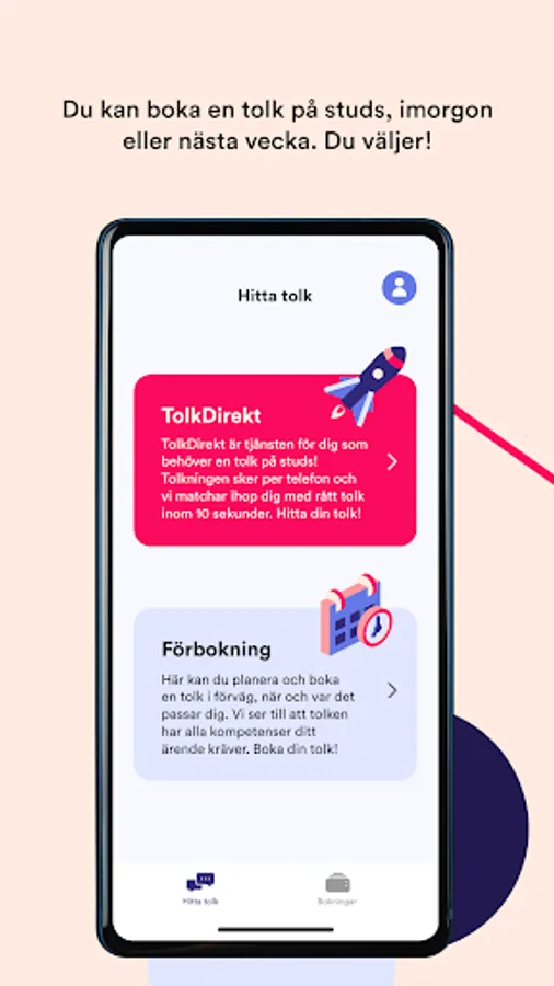 Transvoice app Interpreter! you can easily and easily pre-book or use the TolkDirekt tool to get direct access to an interpreter.