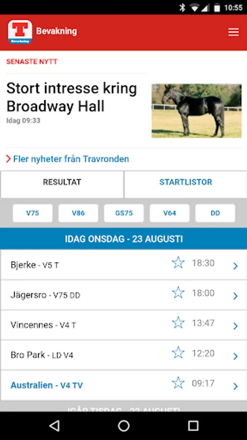 Travronden Security is an app where you can set your own coverage of the start lists, results, jackpots etc. in trot and canter. Obtain notices and / or email when the race will start or when the results are ready. Travronden Security keeps you interested in traveling to-date, whether you follow the daily traveling at close range or if you submit a Daily Double or V75 system occasionally.
