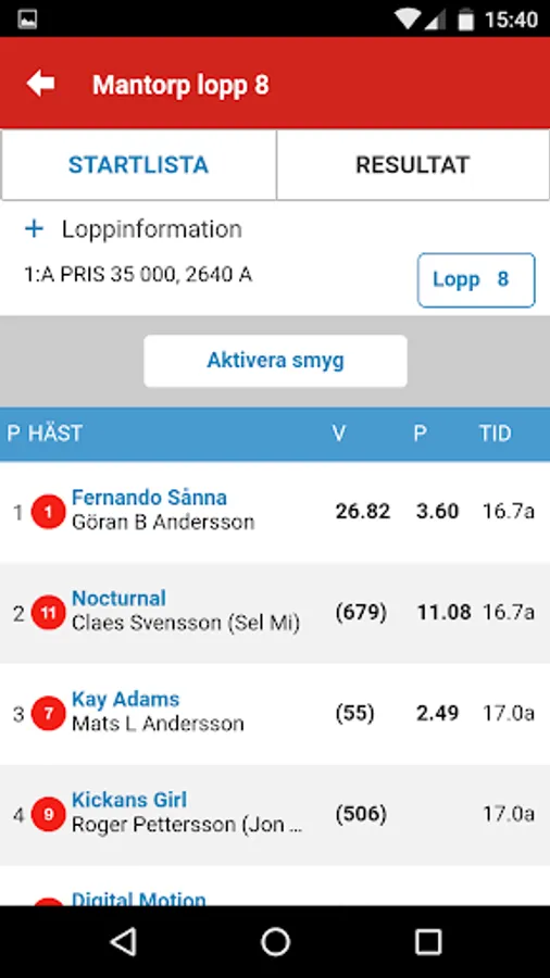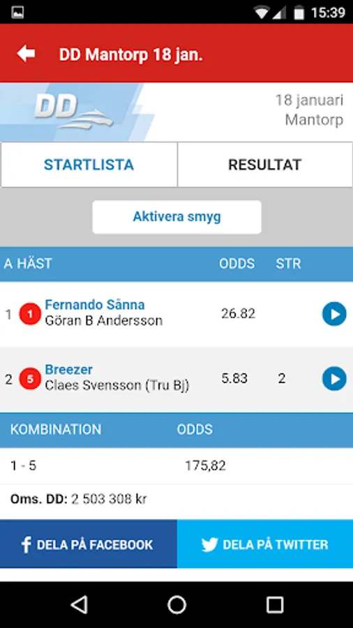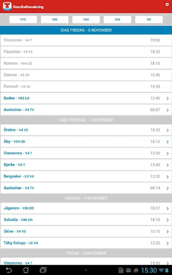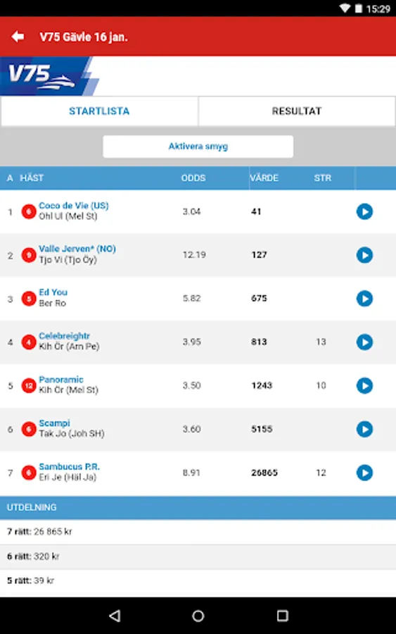 In the app, you can choose if you want to see results right away, or if you want to sneak up result for example Daily Double or V75 for each department.