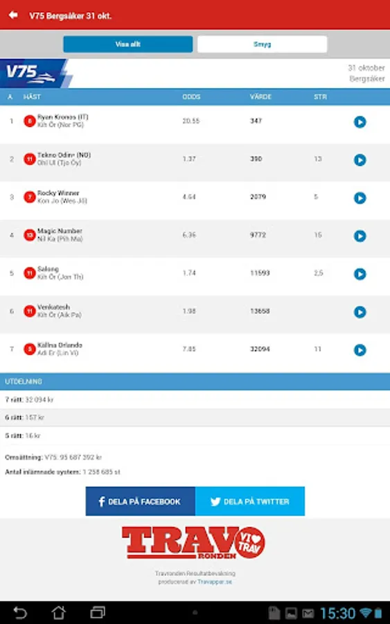 Travronden is Sweden's largest and leading magazine for harness racing with over 100,000 readers every week. Travronden consists of a newspaper that comes out 104 times a year, winter issue, travronden.se, Web TV magazines, newsletters, themed supplements and much more.