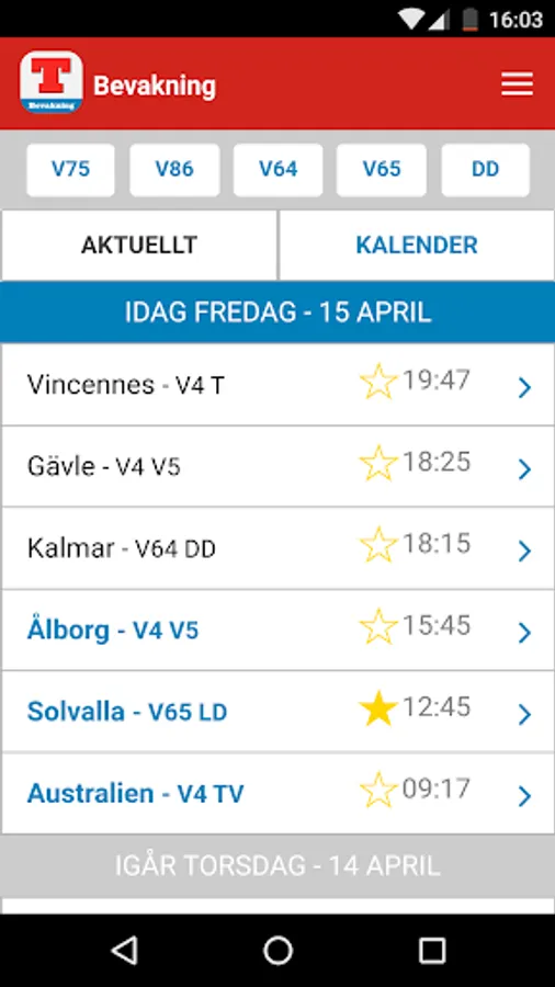If you have downloaded the app, mobile notice when it's 15 minutes to the start of the V75, V75 when the result is ready and at lunch the day before it's jackpot of V75. If you want to monitor, V86, V64 or V65 from the ATG so you can set it in the app.