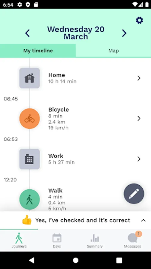 ActiveTravel is powered by TravelVu trip detection and automatically gives you a travel diary suggestion, including all your trips during the day, without you needing to indicate when you are moving. To get feedback on your trips, review the suggestion, adjust if necessary and then confirm the day.