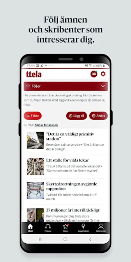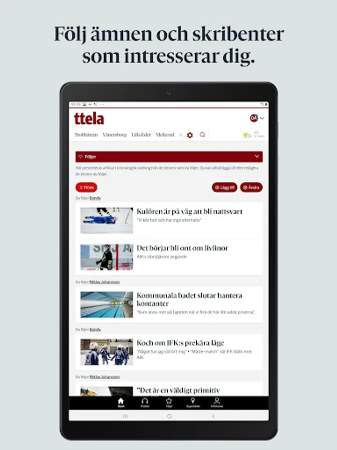 With TTELA's app, you can follow the topics and writers you care about and create your own news feed. You can also set so that you receive a push notification when something has happened in your monitored areas.