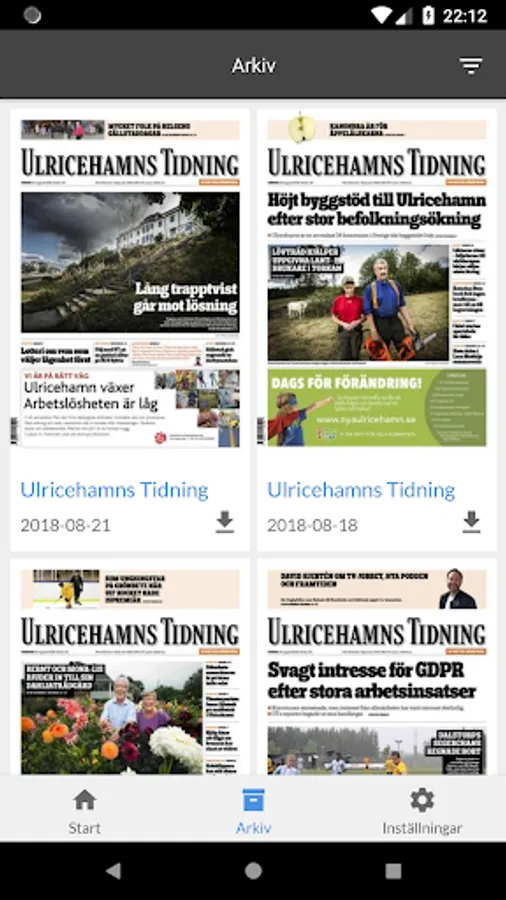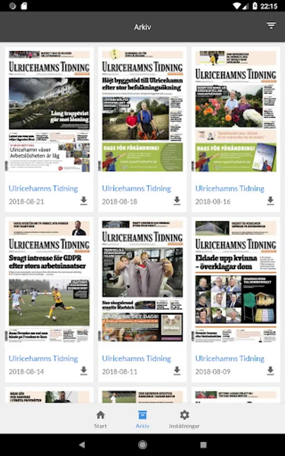 Welcome to read Ulricehamns Tidning in your Android. Here you get access to the newspaper's ordinary shares and all attachments. Ulricehamns Tidning's motto is news from here. We have a total focus on the events and people in Ulricehamn with atmospheres.