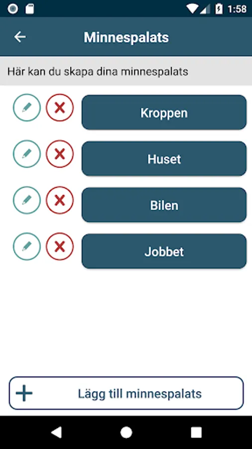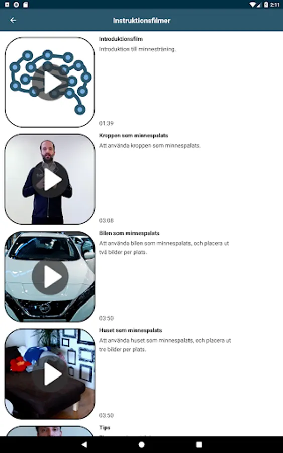 If you want to participate in the study, download the Memory App. Then you need to activate it with a code that you get when you sign up for the study. Once you have done so, you will have to answer a short questionnaire. Then you will learn a memorial strategy in a series of films with the Swedish Memory League's national coach Idriz Zogaj. The memory strategy is called the locus method and involves visualizing what one wants to remember for his inner eye and creating a kind of mental memory palette. With the help of the locus method, you can then train to remember as much as possible in a memory game. We want you to practice with the memory game several times a week, preferably for a moment every day. The goal is to be as good as possible! On a number of occasions during the study you will have to do memory tests.