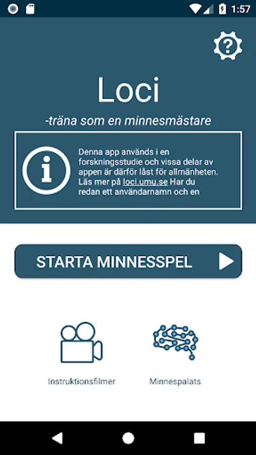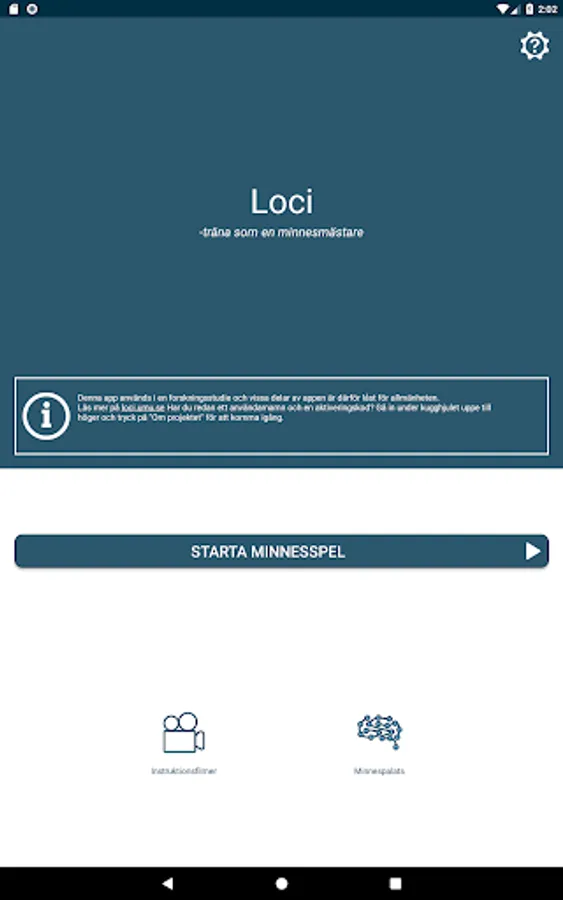 Learn a memory strategy and train your memory for three months! The Loci Memorial App is developed at Umeå University. To use the app you need an activation code that you get if you sign up for the study.