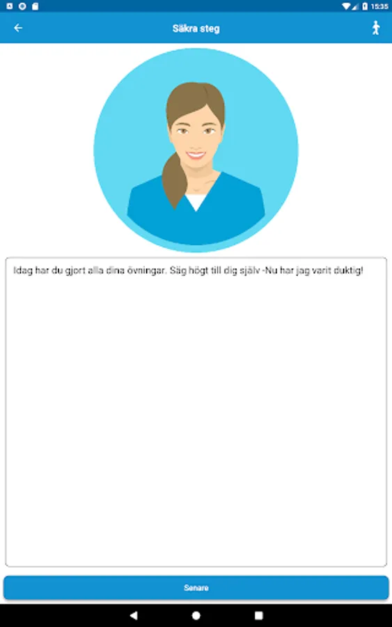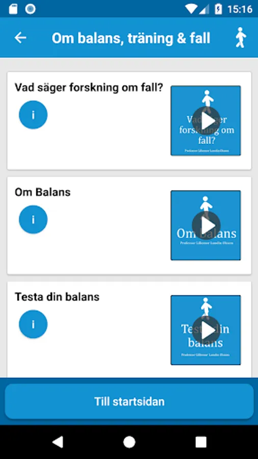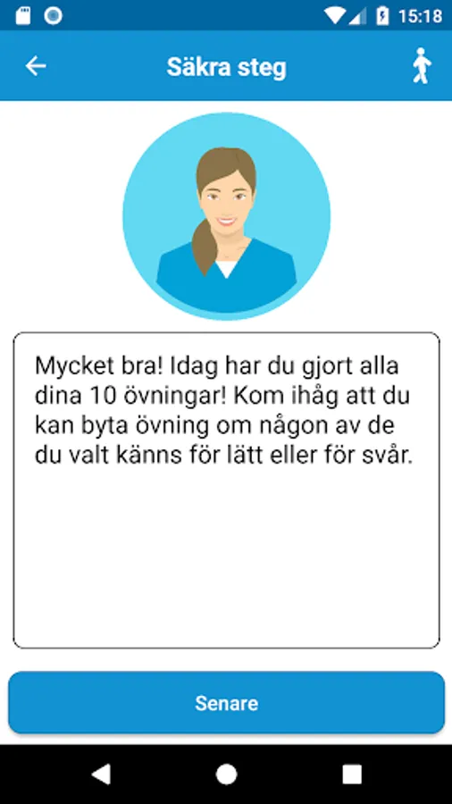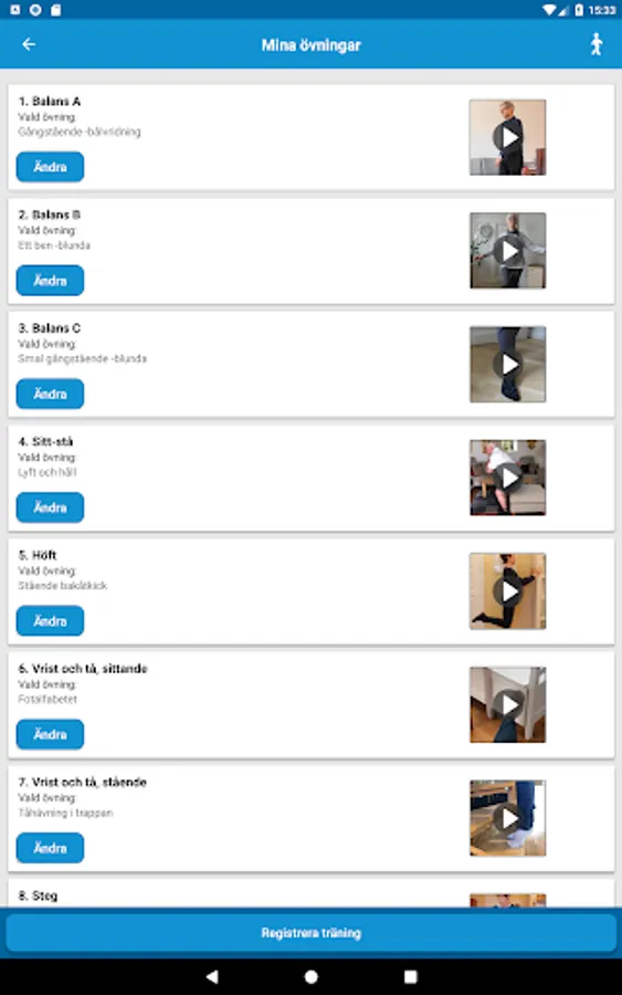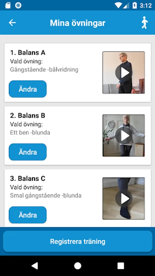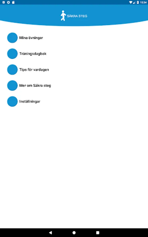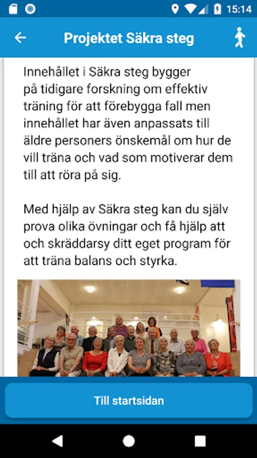 Safe steps are based on previous research on training to prevent cases. The app contains exercises for balance, strength and steps and walking. The exercises are divided into several categories and are available in different degrees of difficulty so that they can be combined into an individual training program. In total there are about 50 exercises to choose from, all shown as short films.