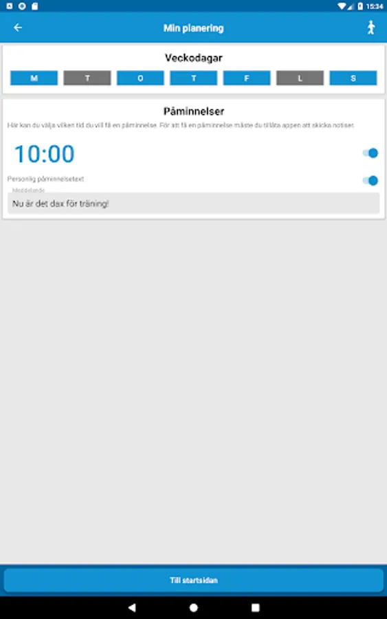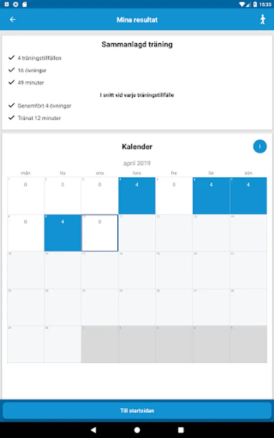 A planning tool that supports the training is available with the possibility to set reminders, a training diary and statistics on the training that is registered. A virtual physiotherapist reminds and gives encouraging feedback when exercising.