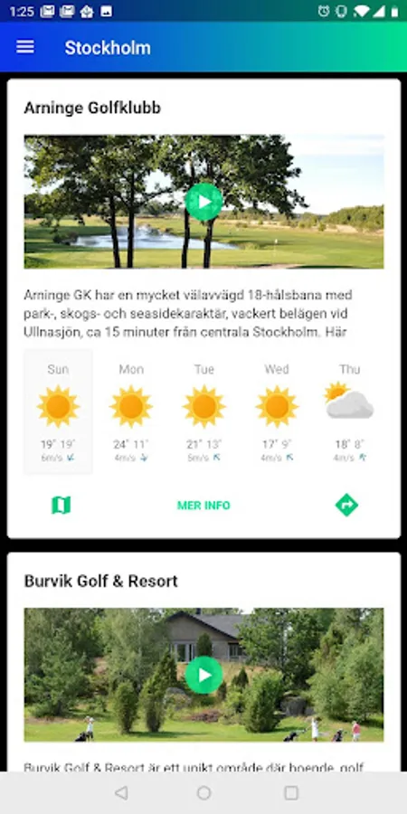 With the V sport golf card you get a 40% discount on 40 different golf courses in Sweden, exclusively for you who are a V sport golf customer. The app also includes a bangguide for all 40 golf courses and a TV guide so you do not risk missing anything from the European Tour, LPGA, Ryder Cup and more.