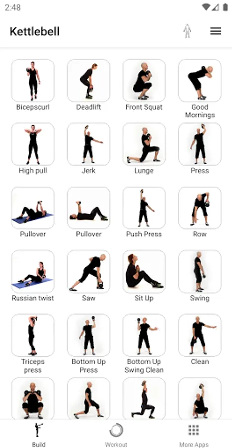 - Be inspired by 51 Kettlebell exercises presented in sharp HD video.