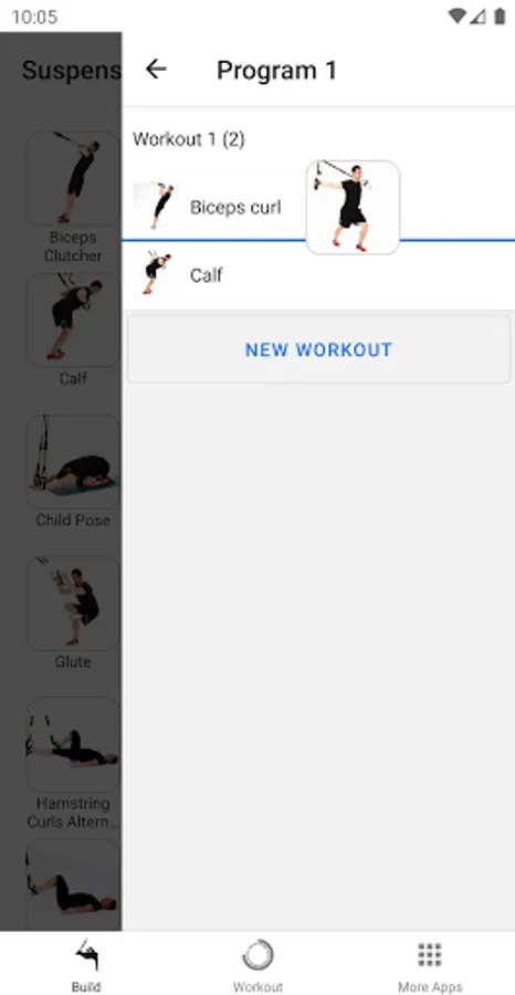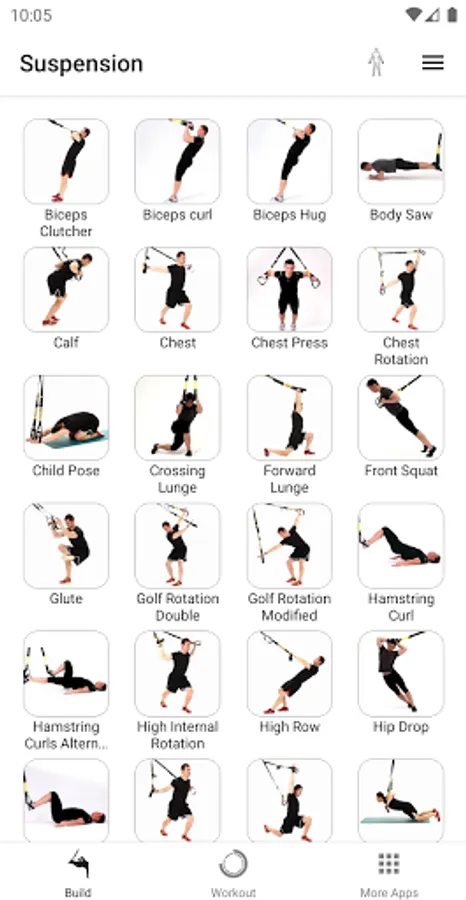 - Create your own personal suspension workout with simple drag&drop interface, or choose one of the prebuilt workout programs.