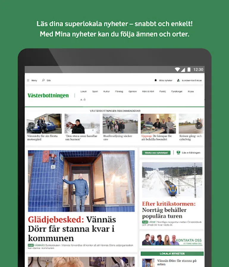Welcome to Västerbotten's news app! Your local newspaper that gives you full control of everything that happens in Vännäs, Vindeln, Bjurholm, Nordmaling and Umeå's countryside such as Tavelsjö, Sävar and Hörnefors.