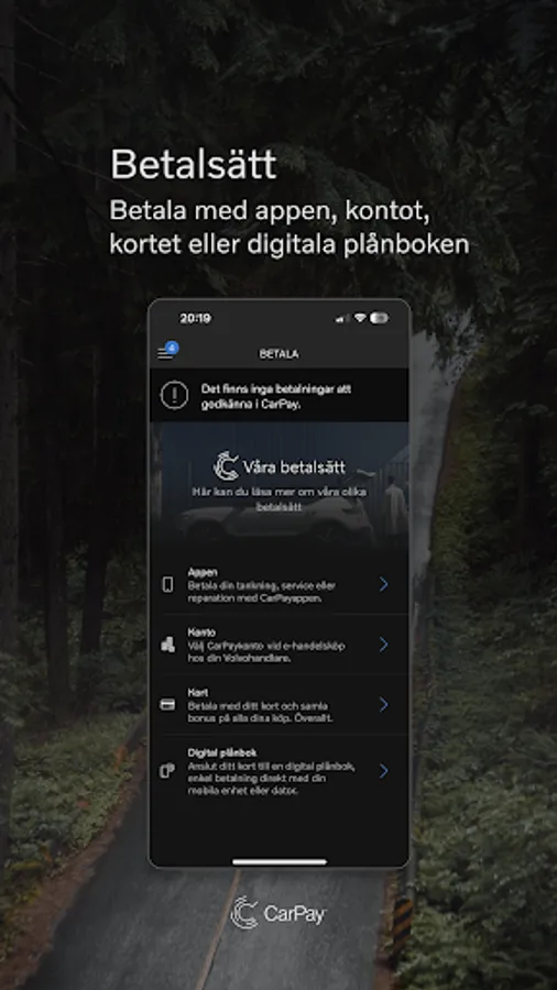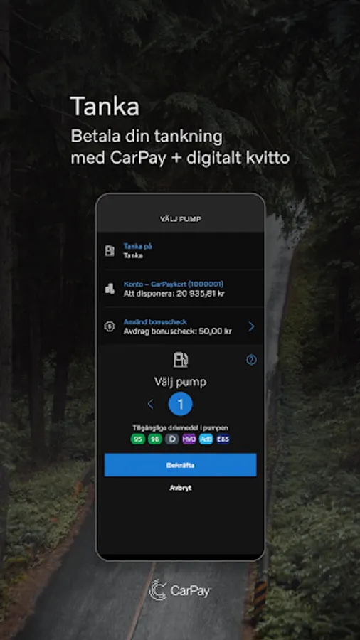 Pay for your refueling at Tanka and receive a digital receipt directly in the app. You can also pay for your service and repair with the app in the Volvo dealership.