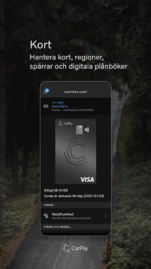 Ordering a new card, blocking your card or ordering a PIN code reminder is easy in the app. You can also manage region restrictions and open and close the card for purchases abroad and online. Connect your card to a digital wallet, easy payment directly with your mobile device. You can make changes at any time.