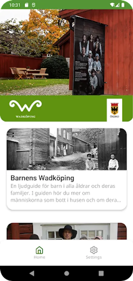 The audio guides tell the story about the people who lived in the houses at the time. They are available in Swedish, English, German, Swedish with audio descriptions and Sign Language. Download the app and select the language of your choice by pressing the menu button and select your language.