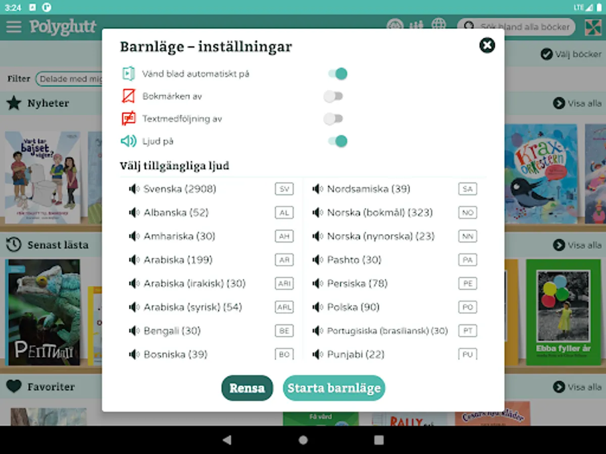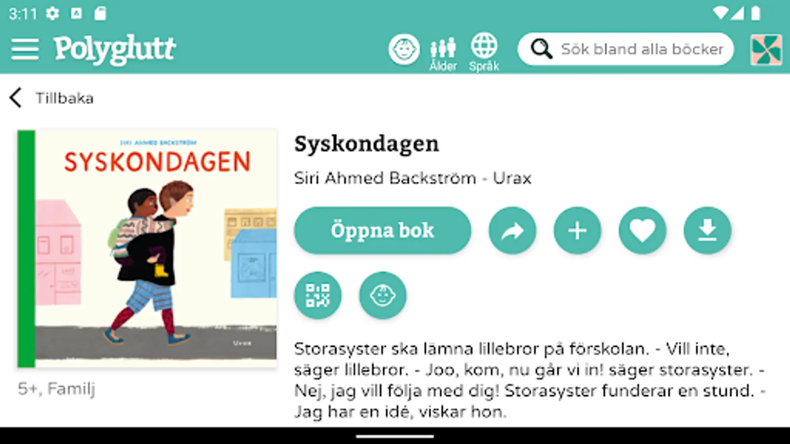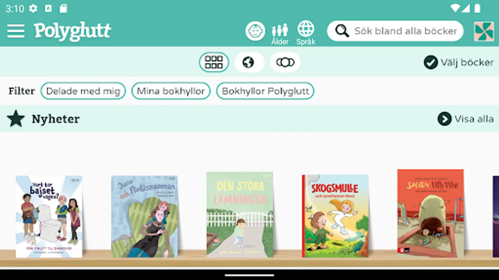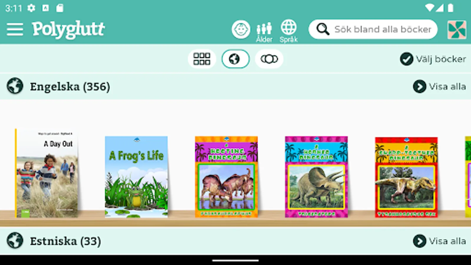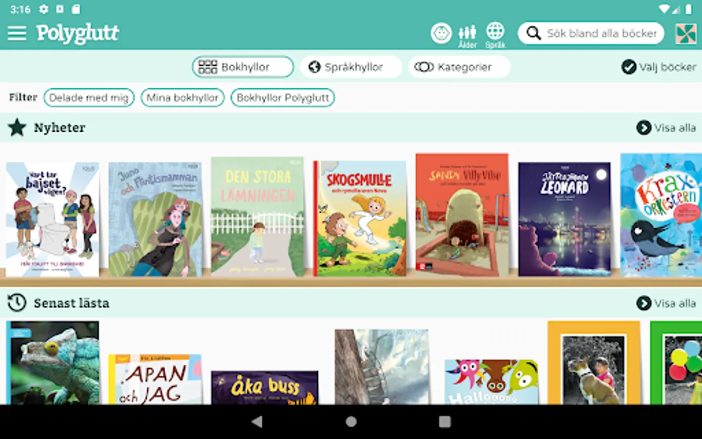 Polyglutt is a digital bookshelf that provides read-in books for use in teaching. All books are read in Swedish and there are a large number of books with sounds in other languages, e.g. Arabic, English, Polish and Somali. There are also books in TAKK and Swedish sign language, as well as visual interpretation. New languages are added continuously.