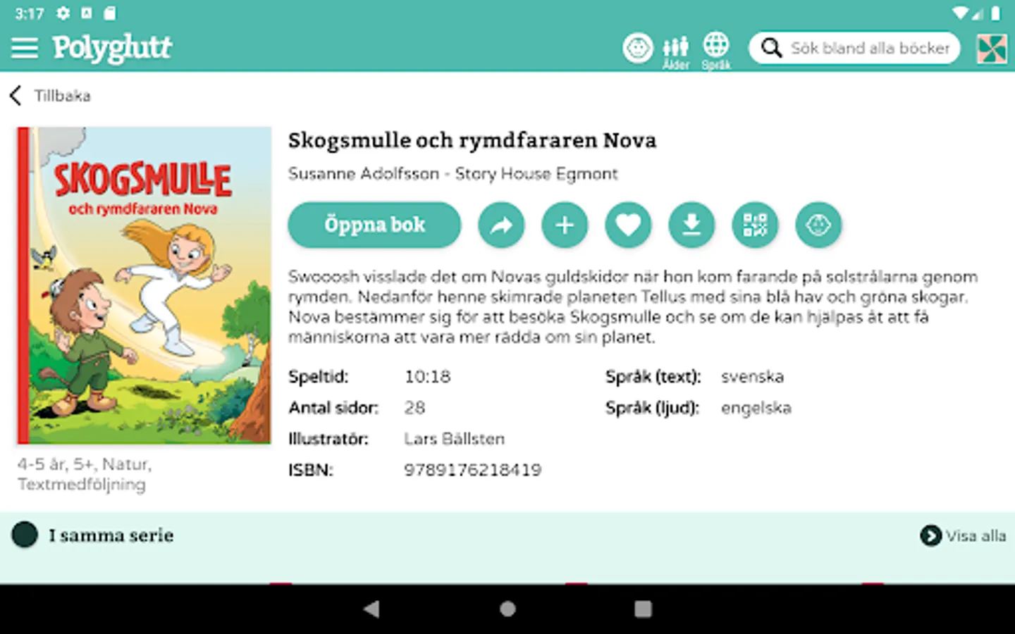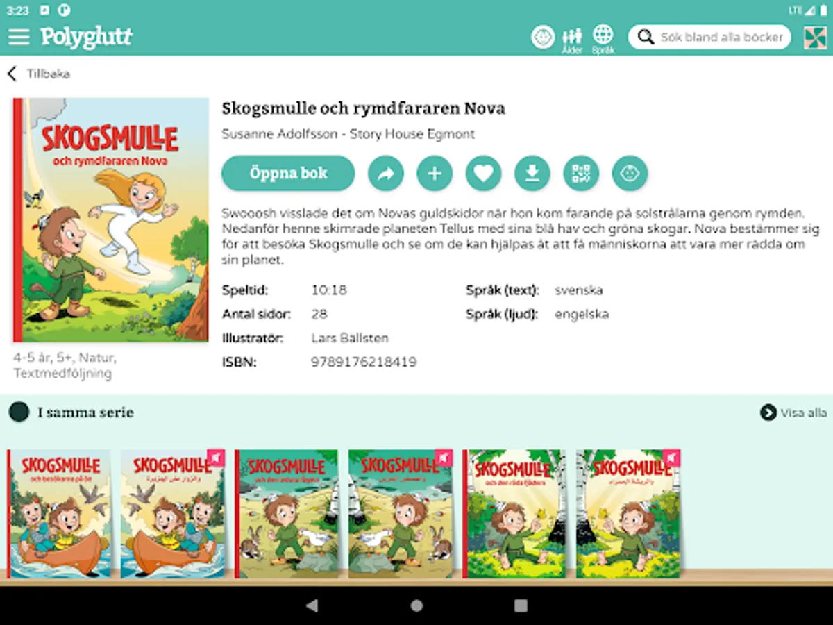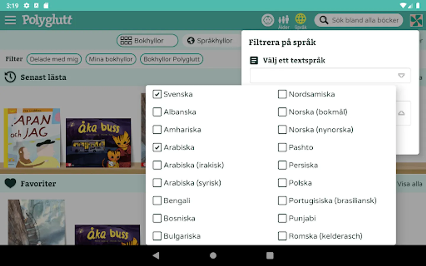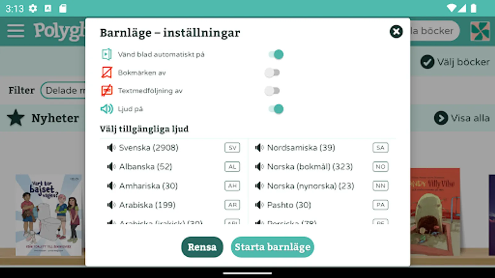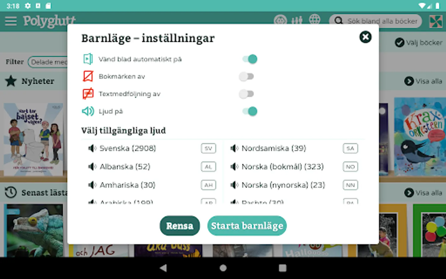 Polyglutt is a digital bookshelf that provides read-in books for use in teaching. All books are read in Swedish and there are a large number of books with sounds in other languages, e.g. Arabic, English, Polish and Somali. There are also books in TAKK and Swedish sign language, as well as visual interpretation. New languages are added continuously.
