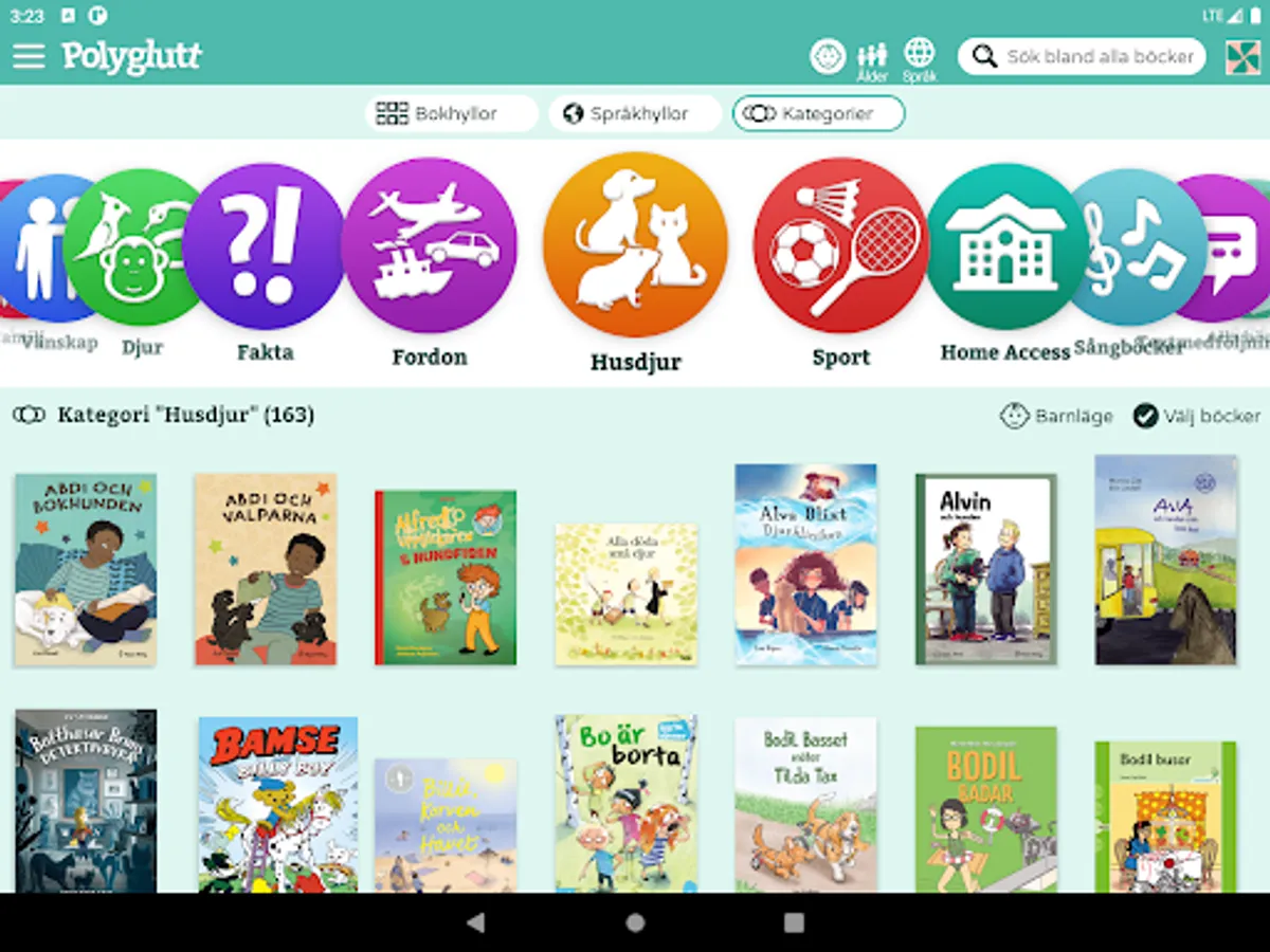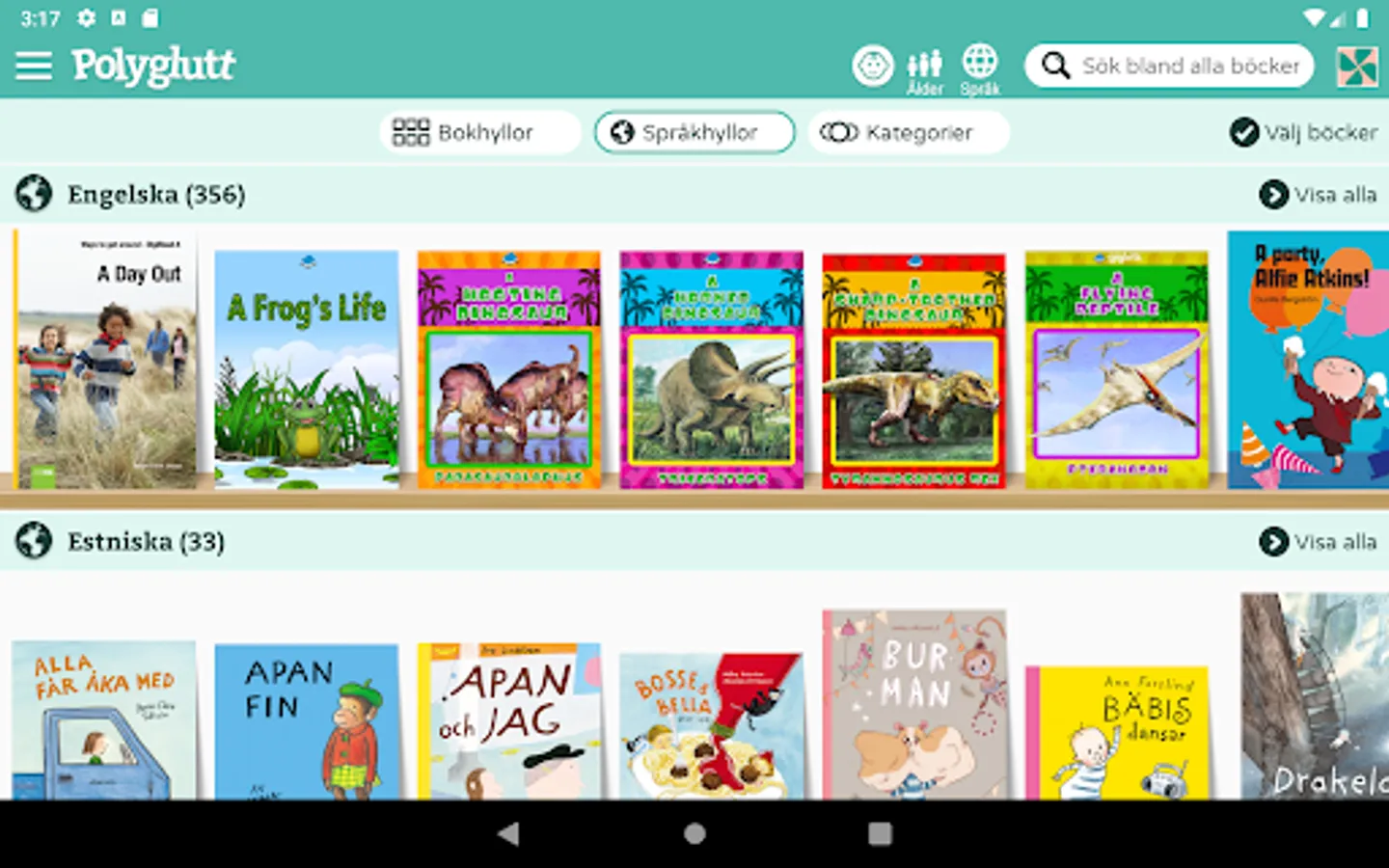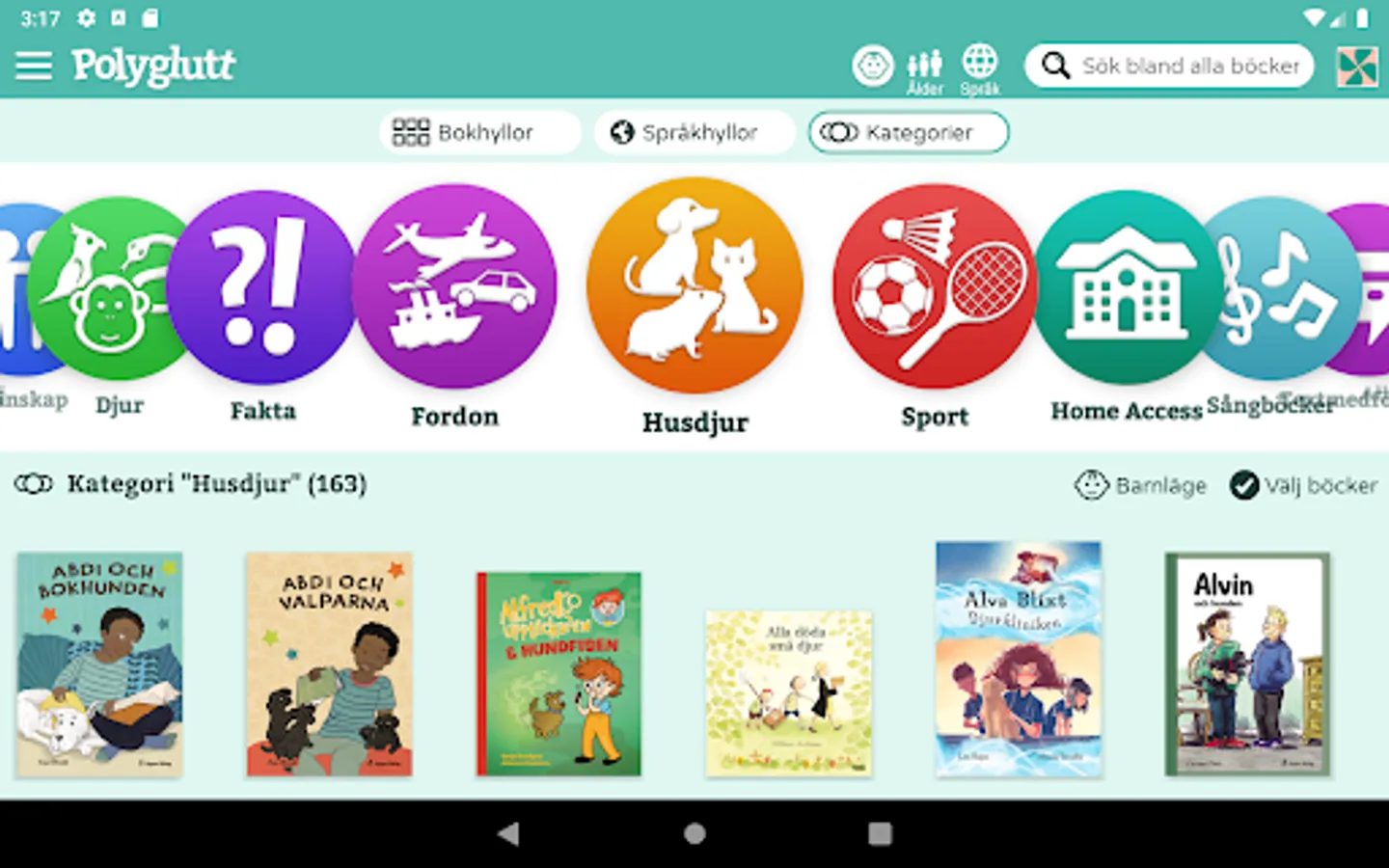 • Choose from selected books in different theme bookshelves (Animals, Empathy, Facts, Chapter books, etc.)