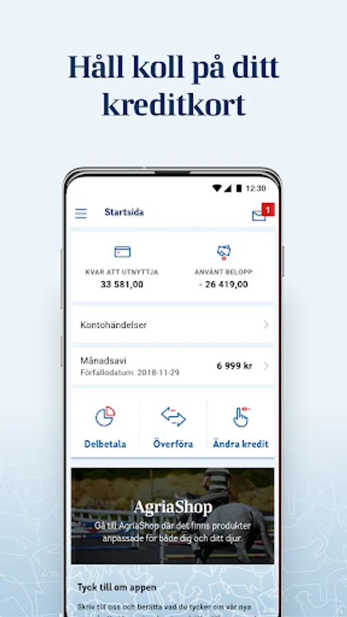 To use the app you need to be a card customer at Agria as well as hold a valid Mobile BankID.