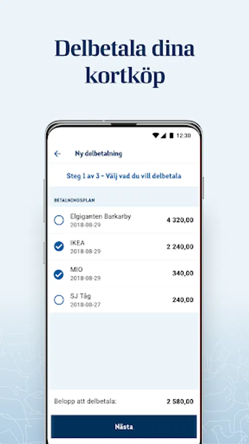& Bull; In the app, you can easily choose to pay your card purchases afterwards