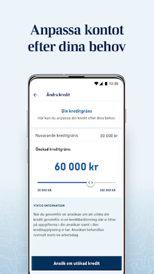 & Bull; Extend or decrease your credit limit with Mobile BankID