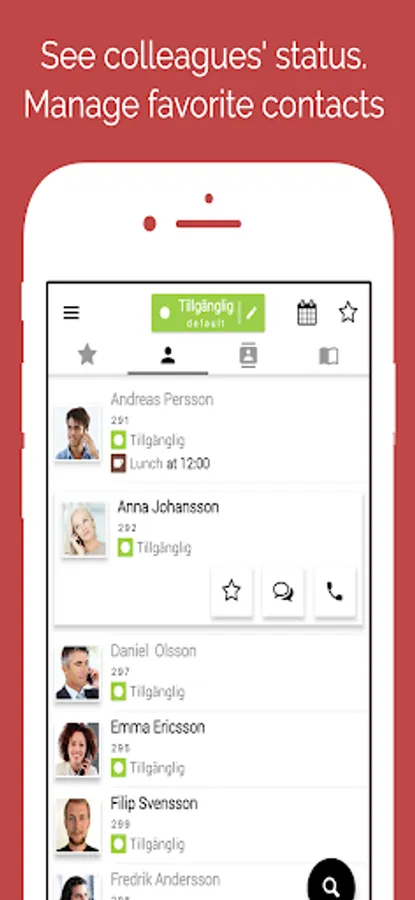 One of the most valuable features is that you do not have to keep track of your colleagues' various direct and mobile numbers. It's enough that you know the names. Your colleagues set how they want to respond with their profiles.