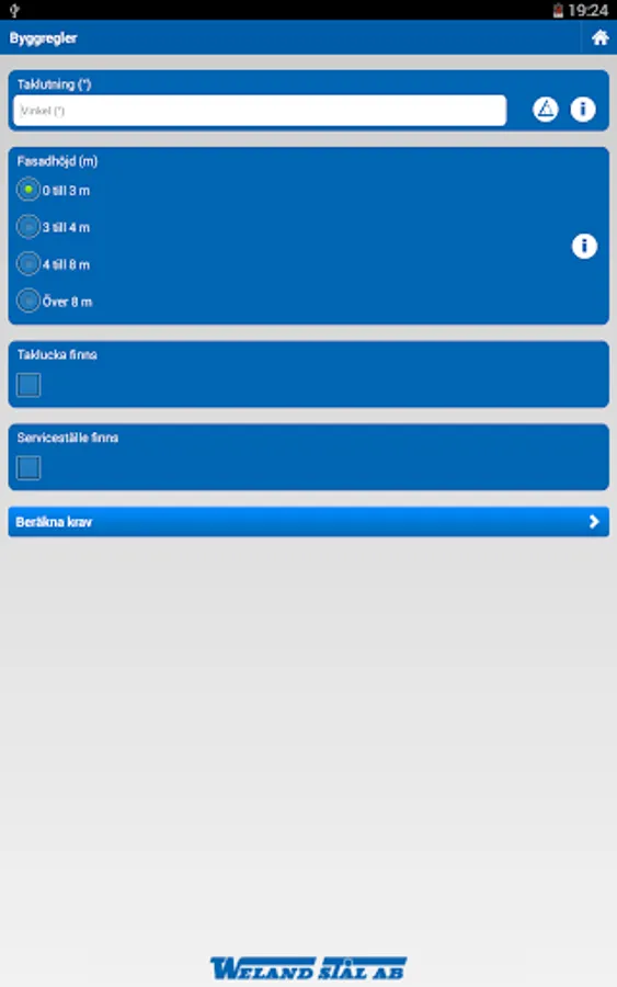 - During the building regulations you can by measuring roof pitch and enter facade height deduce what is required according to the latest BBR (National Board of Housing). During the snow stops, you can extract the information about maximum distance between lace protectors to avoid overloading.